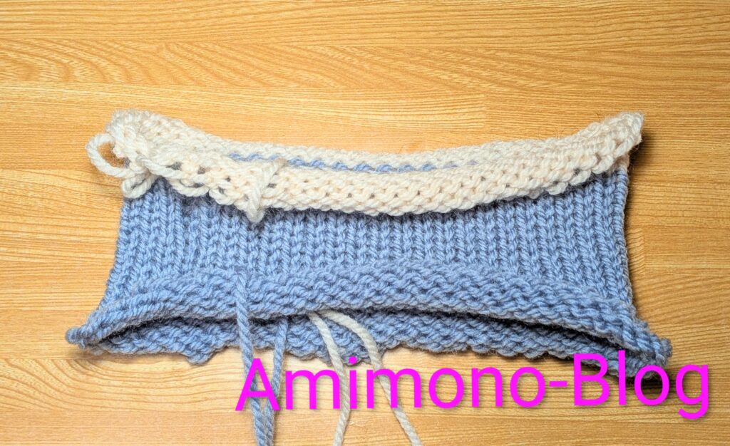 後は、リブ編み(ゴム編み)をしたり伏せ止めをして糸始末をします。