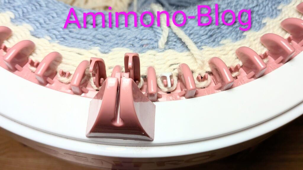 youtubeで編み方の動画を見て早速糸をセッティングしてクルクルレバーを回すんだけど