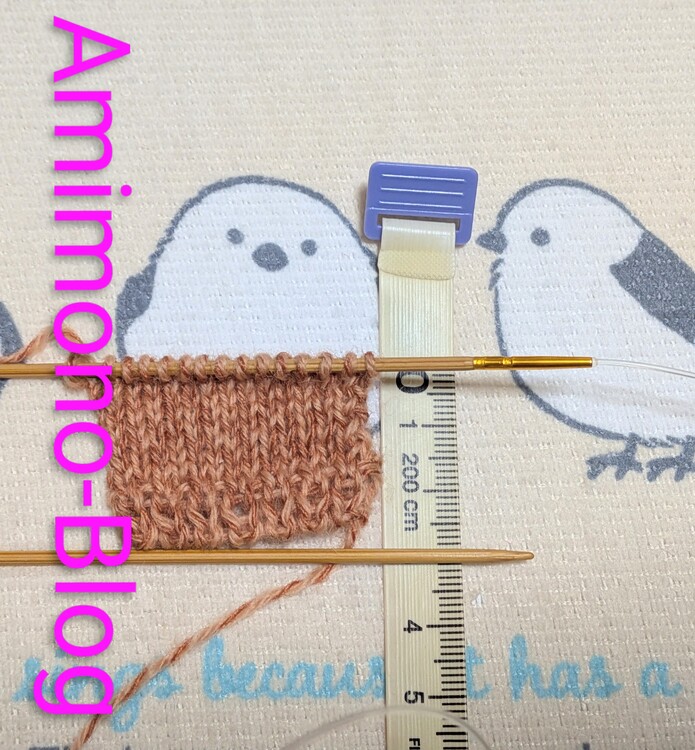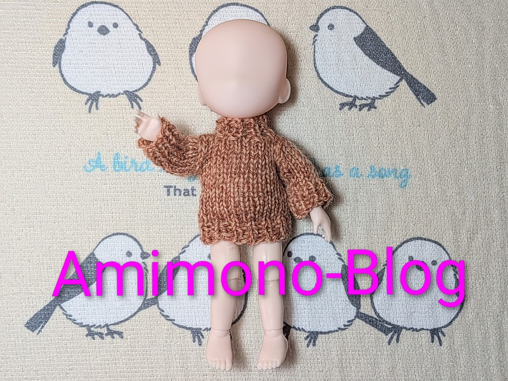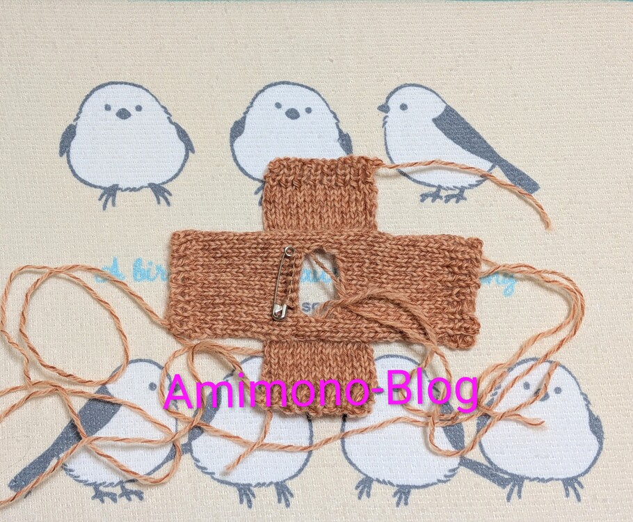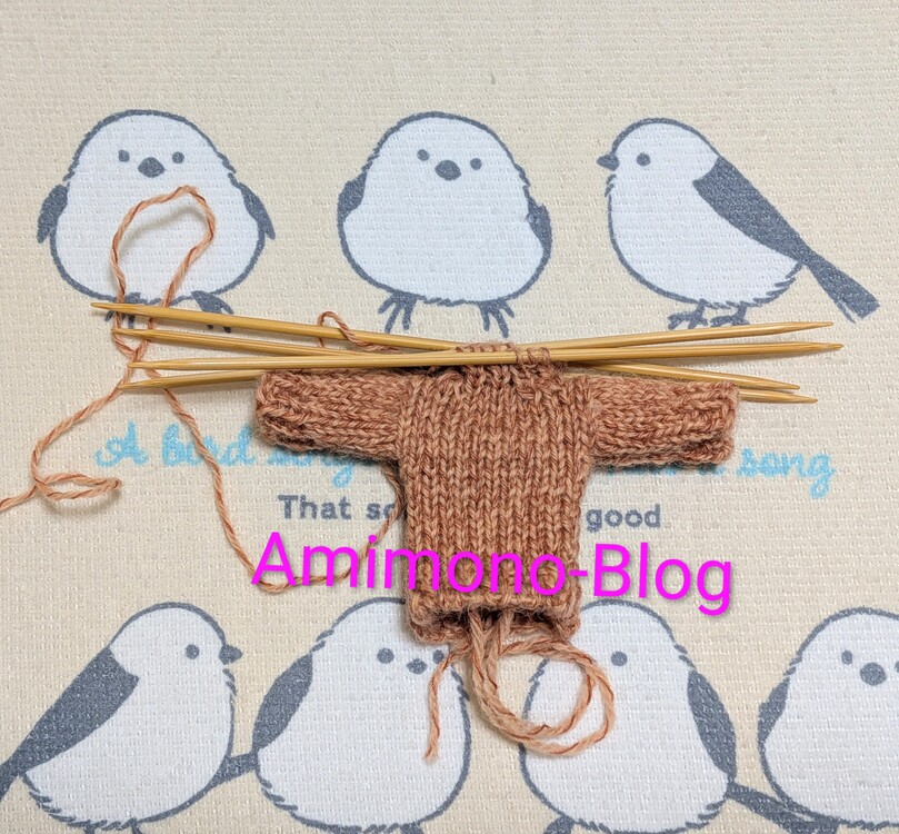 ドールのサイズを測って、ゲージを作って大体の目数と段数で編み始めたよ