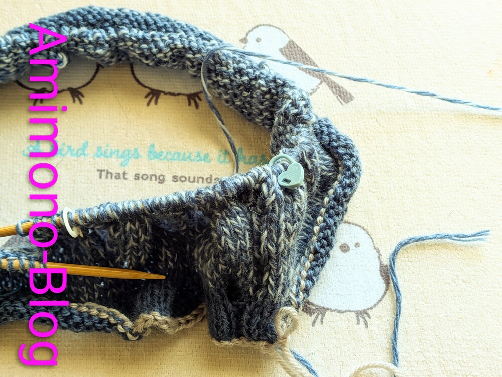 今回購入した毛糸が思ったより細くて、1玉しか買わなかったのでセーターからベストに変更に