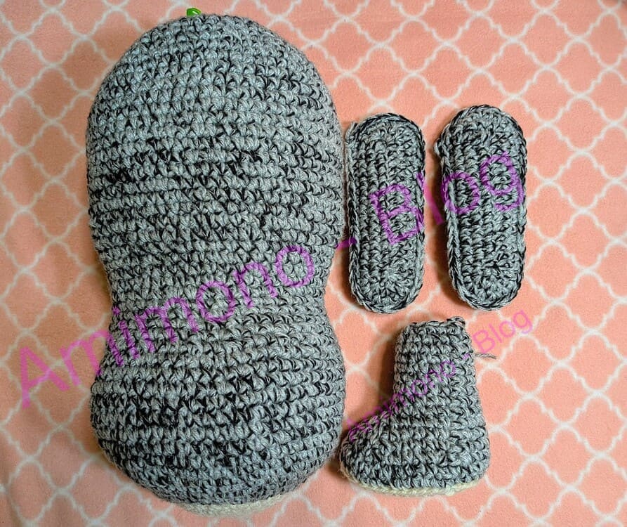 編み図通り編んだんだので胴体が少し短い感じがしてるんだけど、各パーツを付けたら